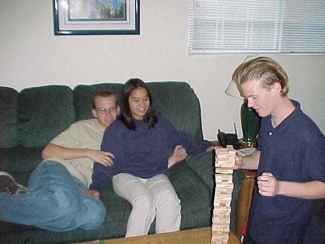 Michael, Sylvie & Brian Debi wood Brandon & Mark Playing Jenga Playing Nintendo games (Sylvie is Michael's Girl friend)
